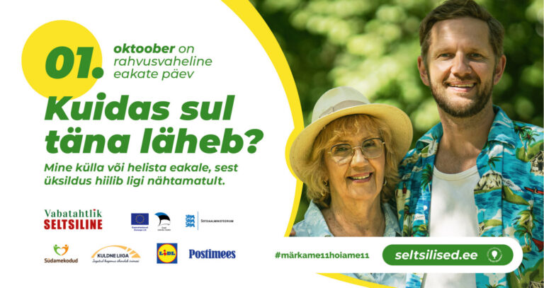 Esimesel oktoobril tähistatakse üle maailma eakate päeva. Eestis kutsuvad eakate heaolu tähtsaks pidavad organisatsioonid märkama sel puhul eriti neid vanemaealisi, kelle suhtlusring on väiksem. Meie seas on tuhandeid eakaid, kes on üksildased, kellel ei ole võimalust suhelda teiste inimestega ja kes on tervislikel või muudel…